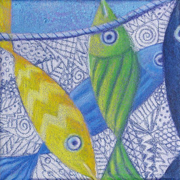Claudia Moritz-Marten ist eine solche Erfinderin – und vor allem Finderin. Ihre meisten Bilder und Objekte haben als Ausgangspunkt ein Fundstück. Da s kann ein Tatoo sein, das sie geschenkt bekommen und, anstatt es sich auf die Haut zu kleben, in ein Bild eingefügt hat. Das kann das noch einzig verbliebene Stück aus Großmutters Geschirr sein, das nun einem gemalten Fisch als Menüteller dient ...
